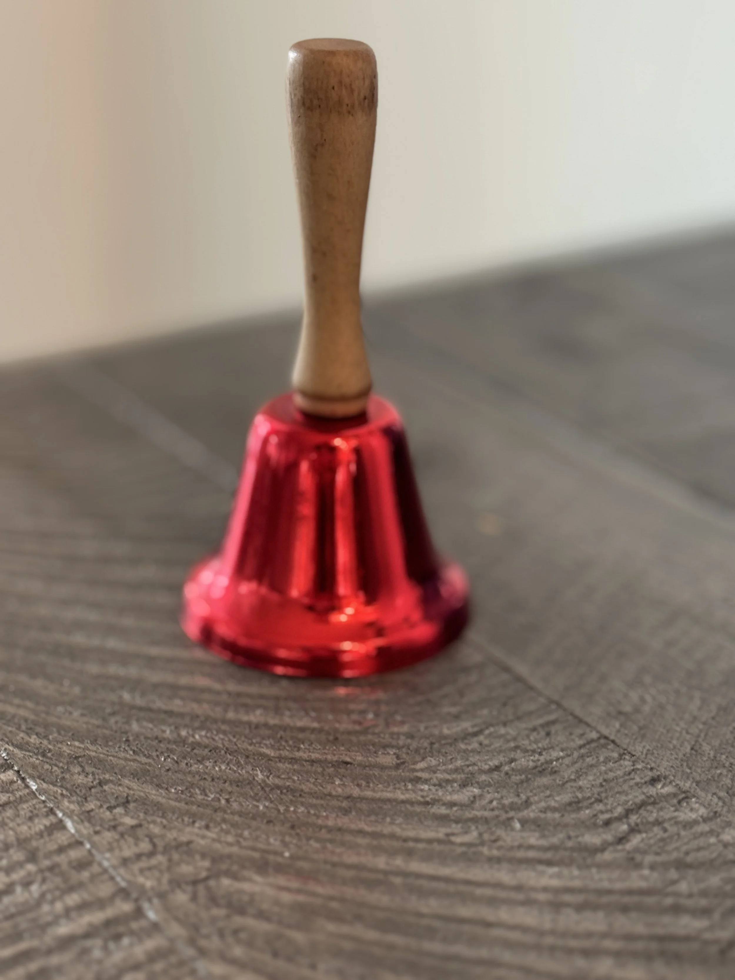 She did, however, find a bell.. Think Salvation Army-outside-the-grocery-store-at-Christmas bell. She wanted it. She kept it. And she rang it. A lot.